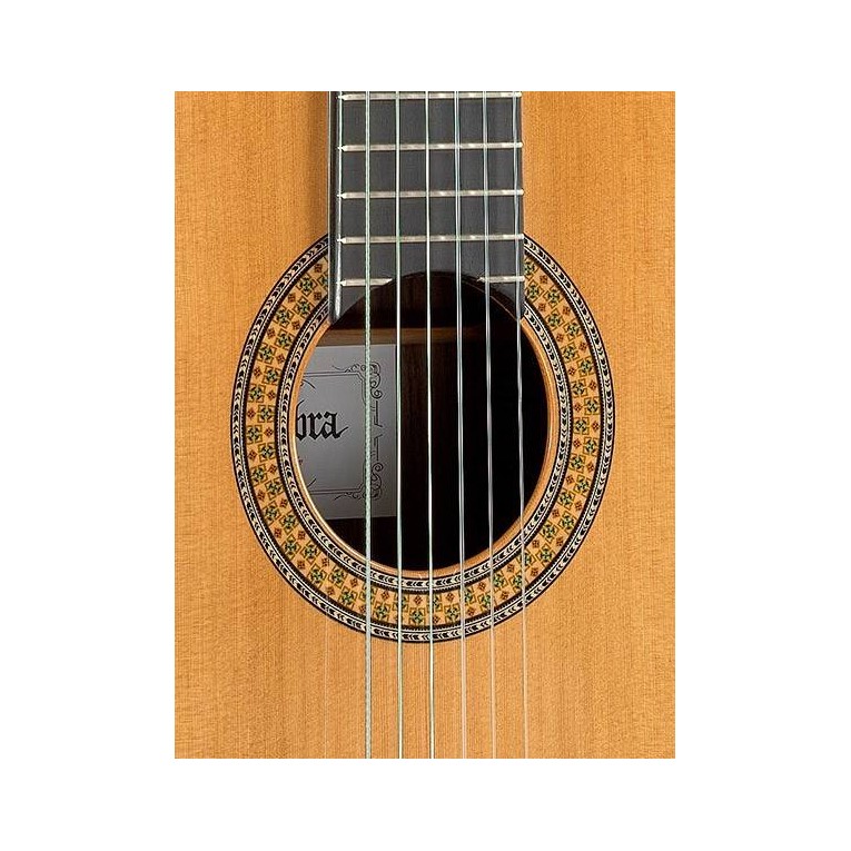 The Alhambra 9P from Alhambra Guitars it incorporates in its 2018 version a new neck with a more ergonomic and comfortable profile called ERGONECK.. It features a bridge-shaped cross bracing pattern to give the top maximum volume and projection. But richness is not the only thing: The action is also just perfect: high enough to make the guitar sing but extremely comfortable. The sound projection is amazing. Basses, mediums and trebles so well balanced. You have a full control of the voices and can emphasize whatever voice you want without any struggle. Therefore you become the conductor and have a complete orchestra under your fingers. It is hard to imagine all the possibilities this instrument offers and the limits are just your imagination.