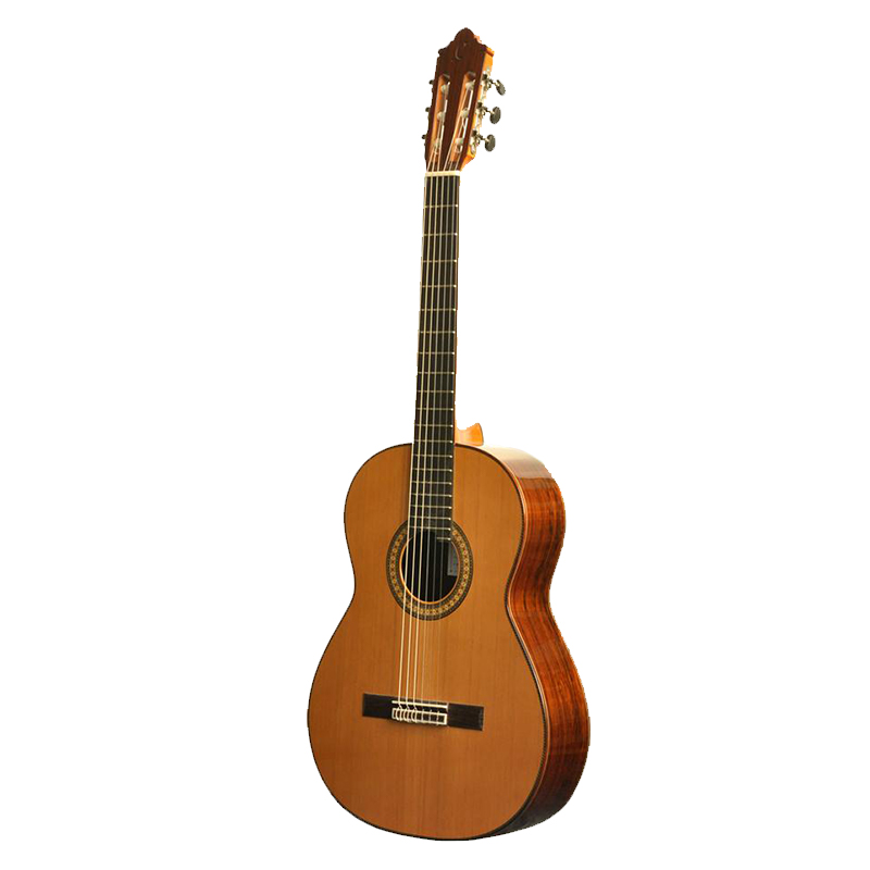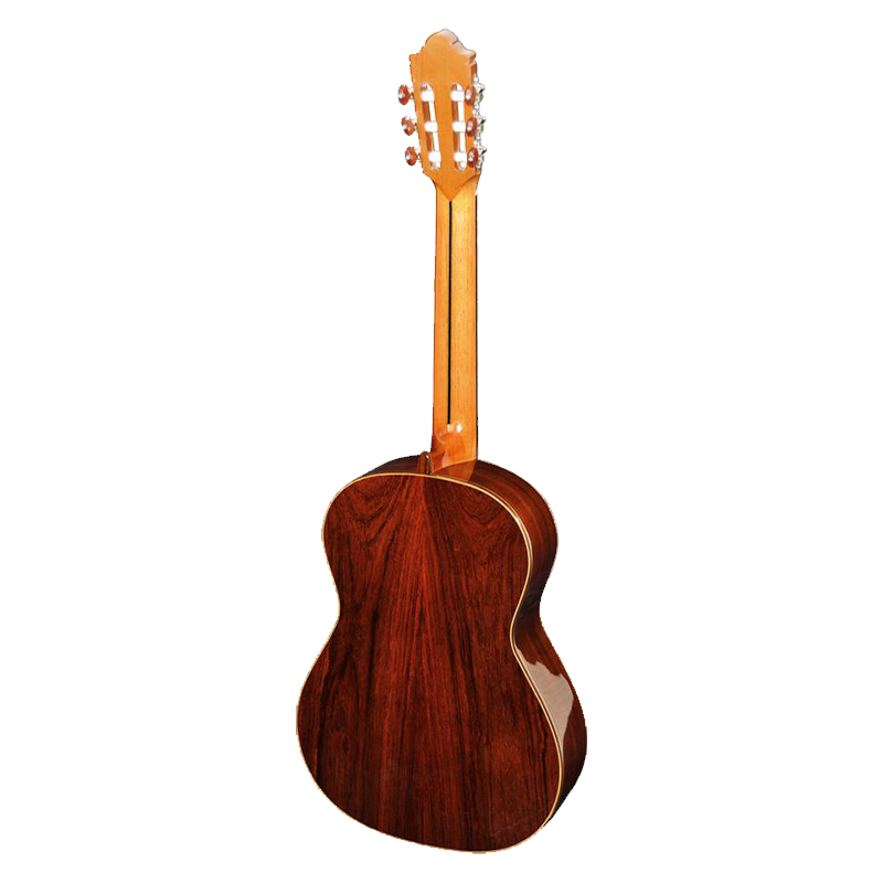 Elegant and gorgeous classical guitar made of fine solid Madagascar Rosewood. The tone is clear and steady in all registers, very well balanced. Excellent projection and remarkable sustain. It is worth mentioning the comfort and smoothness of the neck that enhance the playability of the guitar, which is completely delightful.