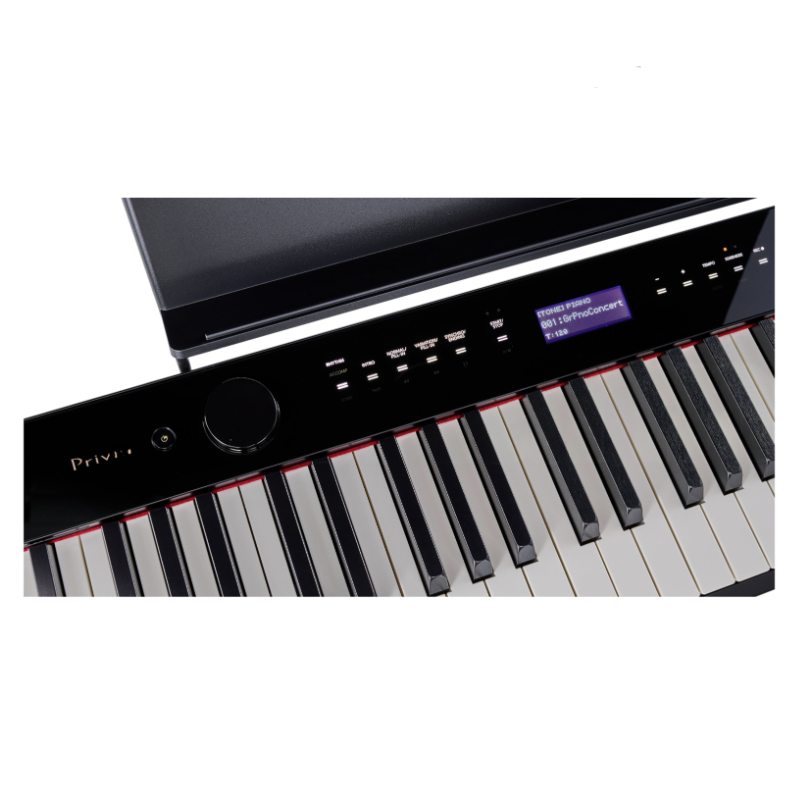 The Privia PX-S3100 from Casio takes the PX-S design to new heights with enhanced piano sound, improved speakers, upgraded Bluetooth connectivity and more. Its sleek design evokes a luxurious concert grand piano in a beautiful case that’s barely larger than the keys themselves.