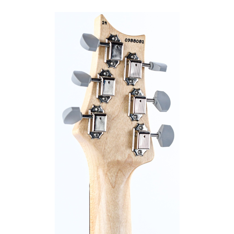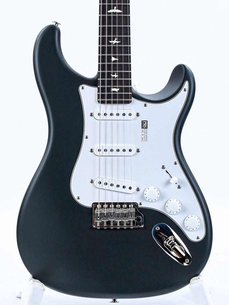 The Silver Sky is a vin­tage-inspired instrument that is at once familiar but also newly PRS through and through. This model was based off of Mayer and Smith’s favorite elements from 1963 and 1964 vintage instruments, resulting in an idealized version of a vintage single-coil guitar.Some of the more distinctive specifications include, the headstock shape, tuners, neck and fretboard, bridge, and pickups and electron­ics. The headstock shape is based on PRS’s trademark design, but in­verted to both accommodate Mayer’s playing style and also to keep a consistent length of string behind the nut, which makes staying in tune easier.The tuners are a traditional vintage-style, closed-back tuner, but with PRS’s locking design. The neck shape was modeled after 1963/1964 vintage instruments, and the fretboard has a 7.25″ radius. The moment your hand grabs this neck, it just feels right.Like the tuners, the steel tremolo takes a classic design and incorporates PRS’s trem arm and Gen 111 knife-edge screws. The bridge on the Silver Sky is setup flush to the body in the neutral position so that the tremolo bridge only goes down in pitch. By keeping the bridge in contact with the body, the guitar itself is acoustically louder, which improves the signal to noise ratio of the single-coil pickups. The 635JM single-coil pickups are very round and full, with a musical high end that is never “ice-picky” or brash.
